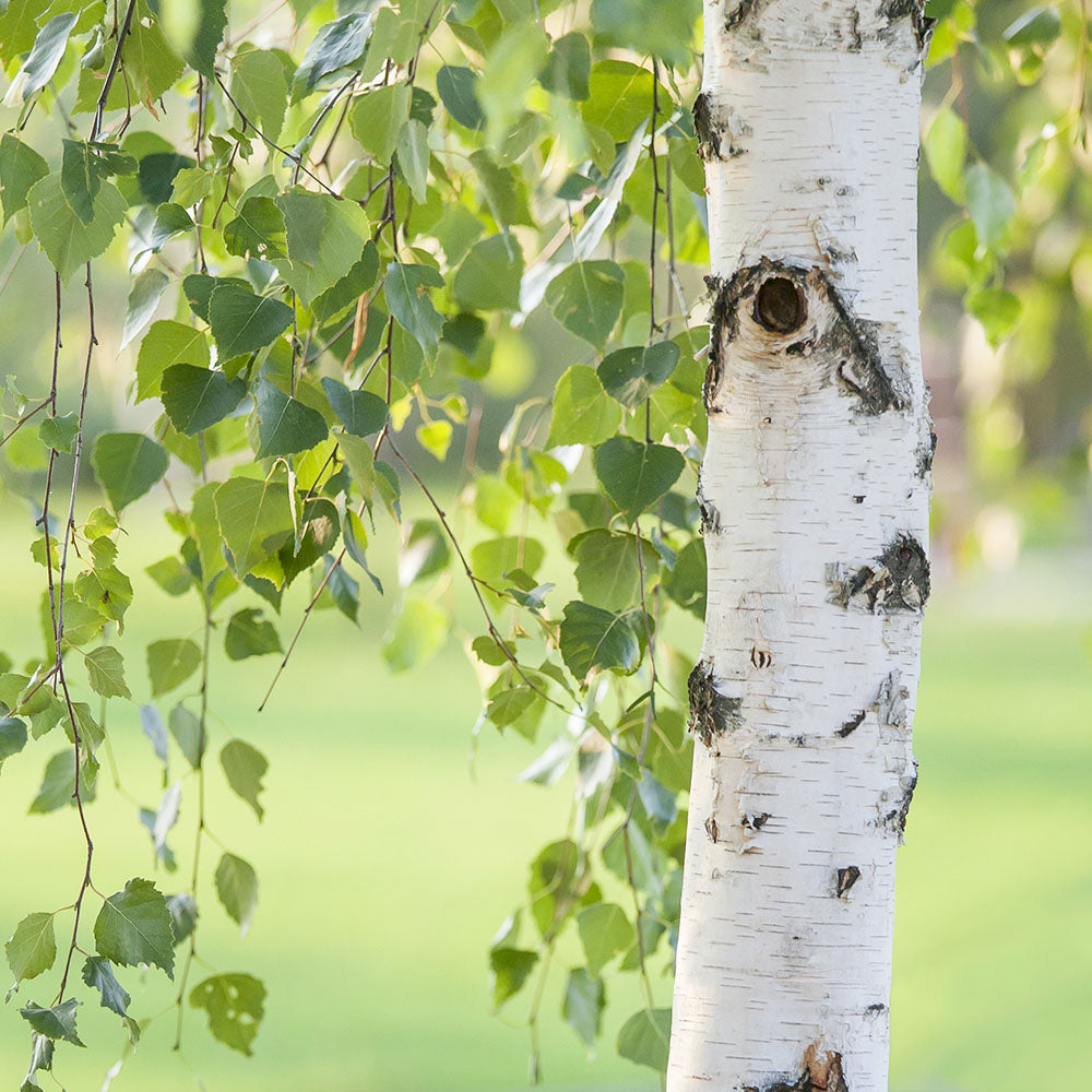 Whilst the popularity of Birch trees is due to their attractive exfoliating bark that comes in a variety of shades, they also boast many other features. Catkins appear with the tree's new leaves in spring and the airy foliage creates lovely dappled shade, taking on pretty pale yellow colours in autumn.